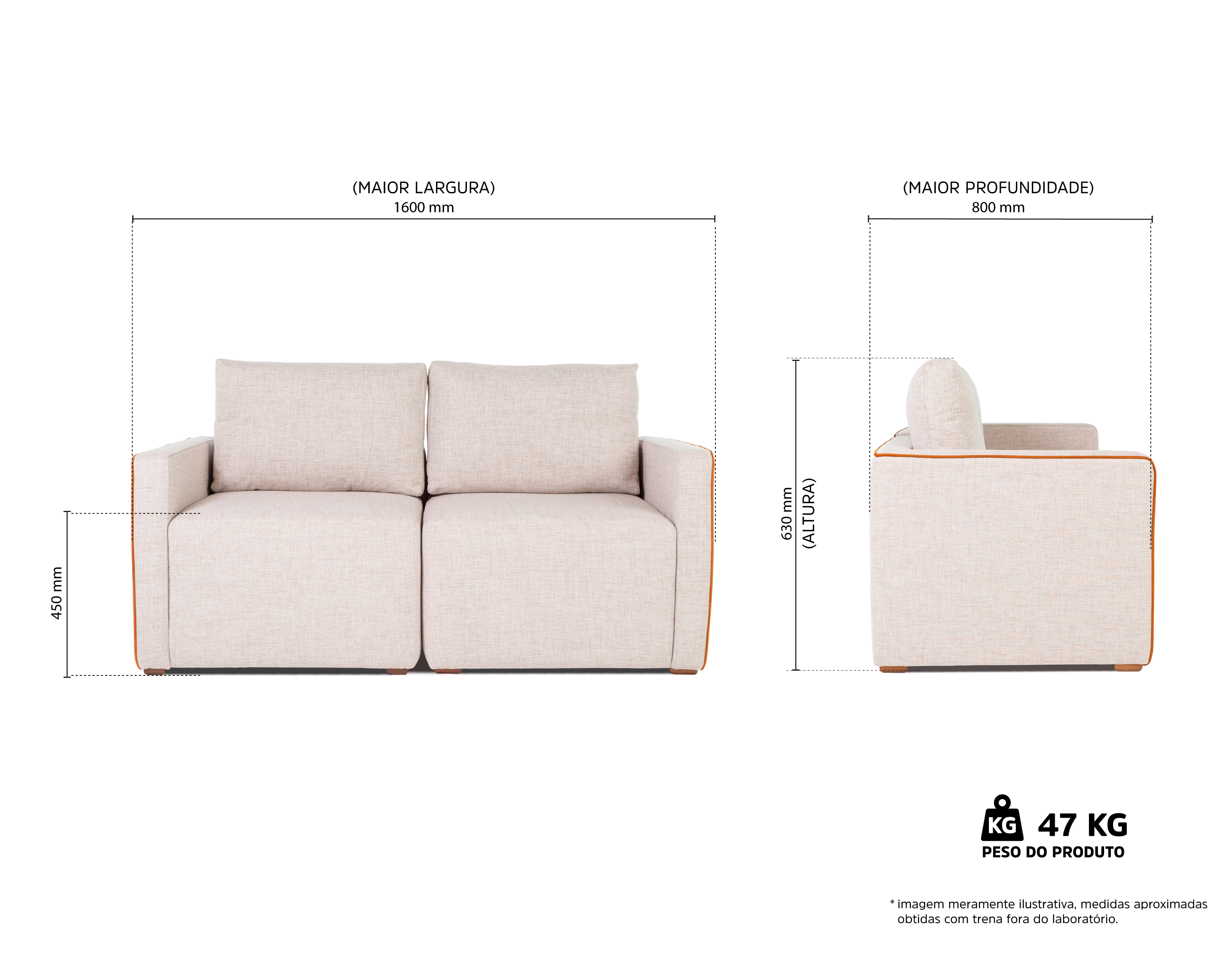 1600 x 800 x 630 mm (Largura x Profundidade x Altura)